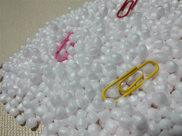 2、eps粒子:eps是聚苯乙烯泡沫,表面比較光滑有光澤,但是密度相較于epp粒子偏低,易于撕開,回彈性也相對差一些,使用壽命也低于epp粒子。